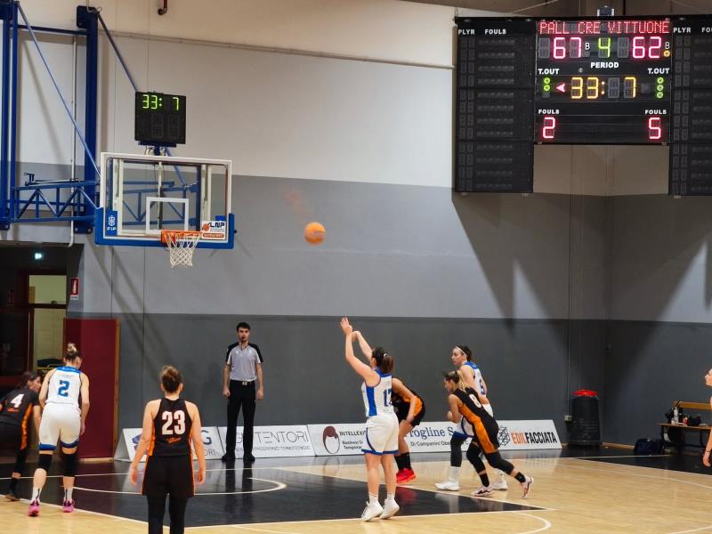 Che sul parquet della Cremonesi tutti vorranno fare bella figura ornai è assodato e non è sfuggita alla regola l'ultima gara contro Vittuone risolta a favore di Caccialanza & C. nei minuti finali. Chi l'avrebbe detto dopo l'inizio fulminante con il quale le ragazze hanno dato l'impressione di indirizzare fin da subito la gara. Ma poi è successo un pò di tutto confermando l'imprevedibilità in una gara di pallacanestro dove può succedere tutto e il contrario di tutto. E per non farci mancare nulla anche degli imprevisti tecnici che certamente non hanno aiutato a conservare la necessaria concentrazione e a rimanere sul pezzo. Dicevamo di un inizio alla grande con le ospiti a subire e iniziative delle ragazze di coach Bacchini che chiudono la prima frazione sul 24-13 e pur perdendo mordente e lucidità oltre che concretezza nel secondo periodo riescono a mantenere un margine di vantaggio da poter gestire al momento di rientrare negli spogliatoi per la pausa. Si riparte sul 33-26 per le padrone di casa che però fin da subito danno l'impressione di non essere più sul pezzo. A conferma di ciò sono le ospiti a prendere decisamente il sopravvento con un parziale di +10 (18-28) che le porta a mettere la testa avanti. Il momento no prosegue anche nella prima parte dell'ultimo periodo con il tabellone che segna un 59-52 massimo vantaggio per Vittuone quando mancano 5' al termine. Il momento è complicato, simile ad altri già affrontati in questa prima parte della stagione e appare chiaro che dal cilindro deve concretizzarsi ancora una volta tutto il carattere e le capacità di questo gruppo. Come è successo nel finale contro Usmate e poi a Varese. Ed è quello che succede con la difesa che non concede più nulla e davanti il canestro torna a sorridere a Rizzi & C. che recuperano lo svantaggio, rimettono la testa avanti, blindano il proprio canestro e non si fanno più riprendere. Con il 68-62 finale cala il sipario di una gran bella partita che ha tenuto con il fiato sospeso il pubblico presente. Complimenti meritati alle ospiti che da neopromossa ha tutte le carte in regola per inserirsi nel lotto delle migliori otto formazioni che saranno impegnate nei play off di fine stagione. Da segnalare l'ottima la direzione arbitrale. Chiudiamo però nel fare i complimenti anche alle nostre ragazze che è bene sottolinearlo pur in una serata a fasi alterne sono riuscite alla fine a cogliere un successo alla fine meritato che la conferma nel terzetto che appaiato insegue Carugate unica attuale imbattuta. Adesso si va in trasferta in terra milanese per i prossimi due turni.